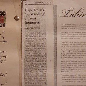 See pictures of the Sir Tahir Levy’s home in District Six, letters from queen, articles written in honor of the late Tahir Levy and Moneeb Levy in studio with Sitara Khalfey.