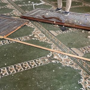 The Zionist forces also attacked a mosque in the area, leaving debris on the prayer mats.