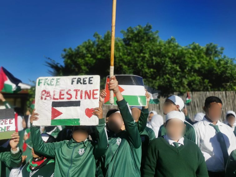HomeNewsAs children massacred in Gaza, school goers raise voice for Palestine As children massacred in Gaza, school goers raise voice for Palestine 16 October 202316 October 2023by Aqeela Cassiem On Monday 16th October 2023, Habibia Primary School students protesting in favor of a free Palestine. Share on FacebookPost on XFollow usSave