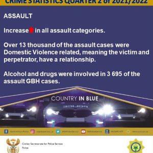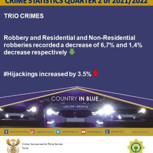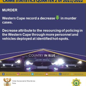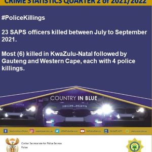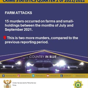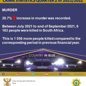 The latest crime statistics also reveal that over 6000 people have been murdered in South Africa between the months of July and September.
