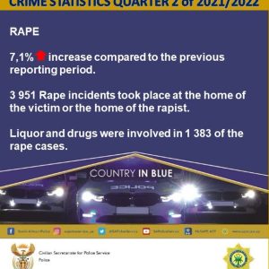 This as more than 1 380 rapes were also committed while under the influence of alcohol.