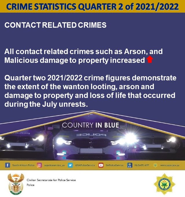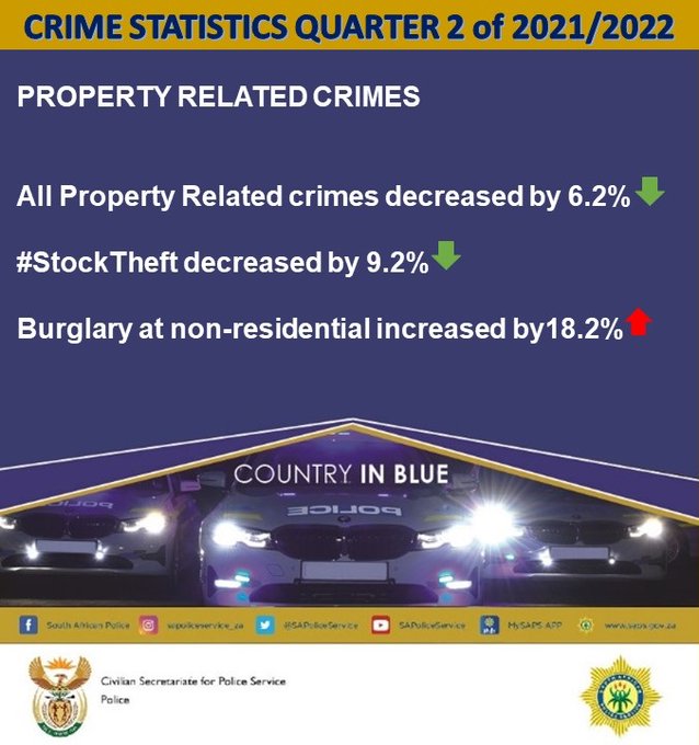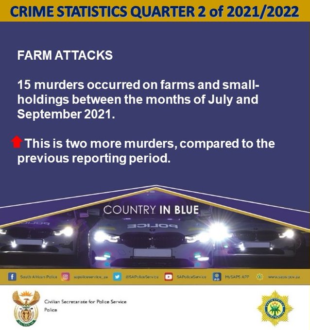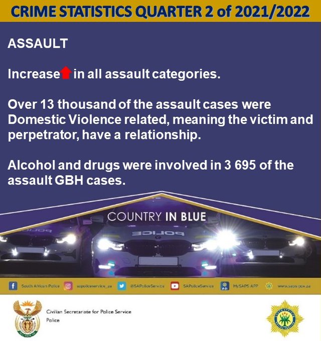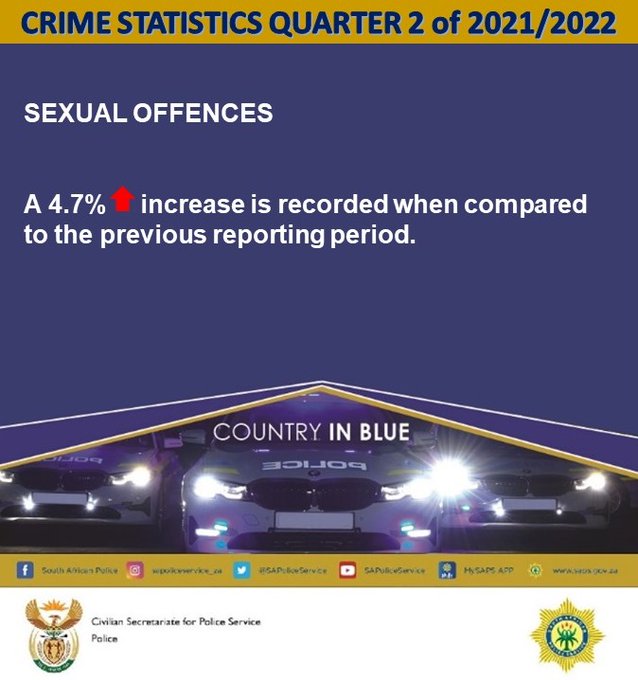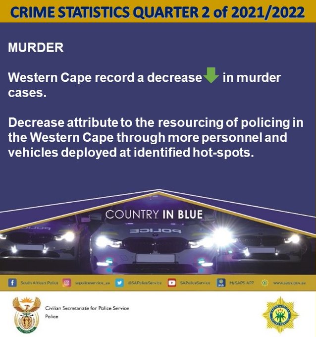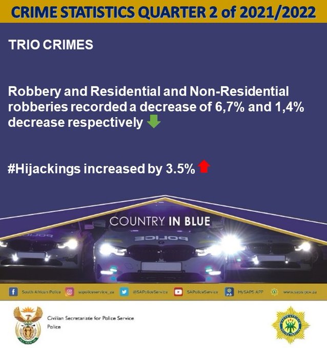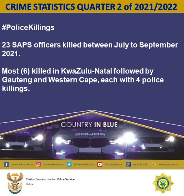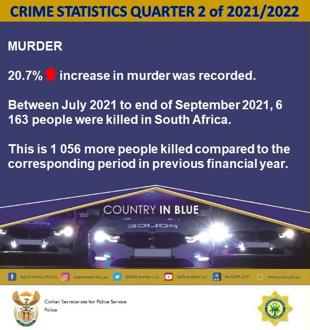 The latest crime statistics also reveal that over 6000 people have been murdered in South Africa between the months of July and September.