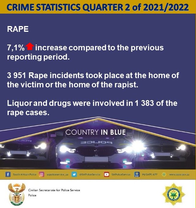 This as more than 1 380 rapes were also committed while under the influence of alcohol.