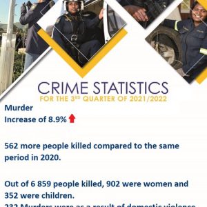 The Western Cape is one of only two provinces that have shown a decrease in murders in the third quarter of the past financial year.