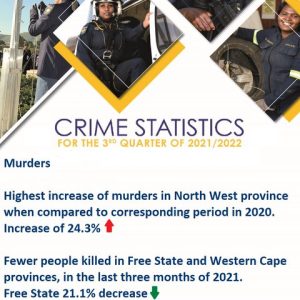 The police’s Major-General Norman Sekhukhune has told members of the police portfolio committee that murders increased nationally by 8.9% or 562 compared to the previous quarter.