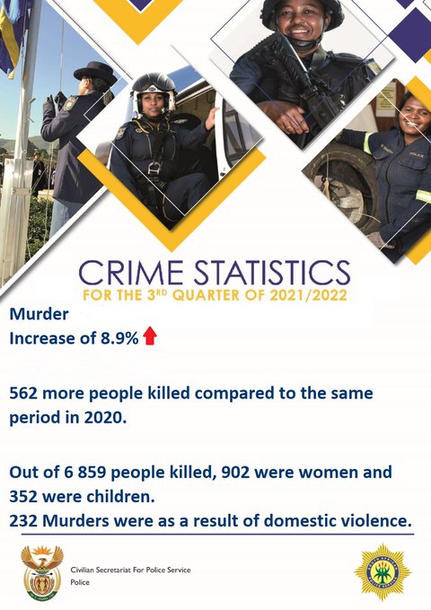 The police’s Major-General Norman Sekhukhune has told members of the police portfolio committee that murders increased nationally by 8.9% or 562 compared to the previous quarter.