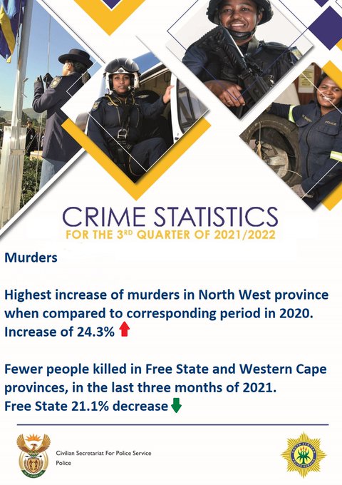 The crime statistics have also shown that the places where murders are mostly to occur remain open fields, residences, and liquor outlets.