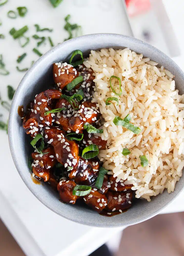 Let the chicken rest for 5 minutes before slicing. Garnish with sesame seeds and chopped green onions if desired.