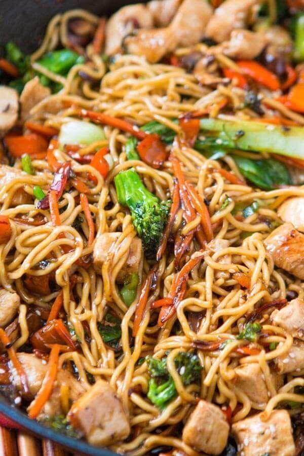Add in the noodles, pour in the sauce, mix everything. Put the lid on and let it cook for another 2-3 minutes.