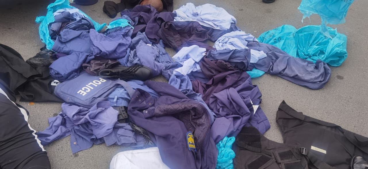 The vehicle was spotted and pulled over. A search resulted in the confiscation of two pistols, ammunition, bulletproof vests and police uniform pieces.