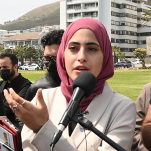 Speaking in Sea Point this morning, el-Kurd drew comparisons between the anti-Apartheid struggle, and the enduring battle in Palestine against Israeli occupation.