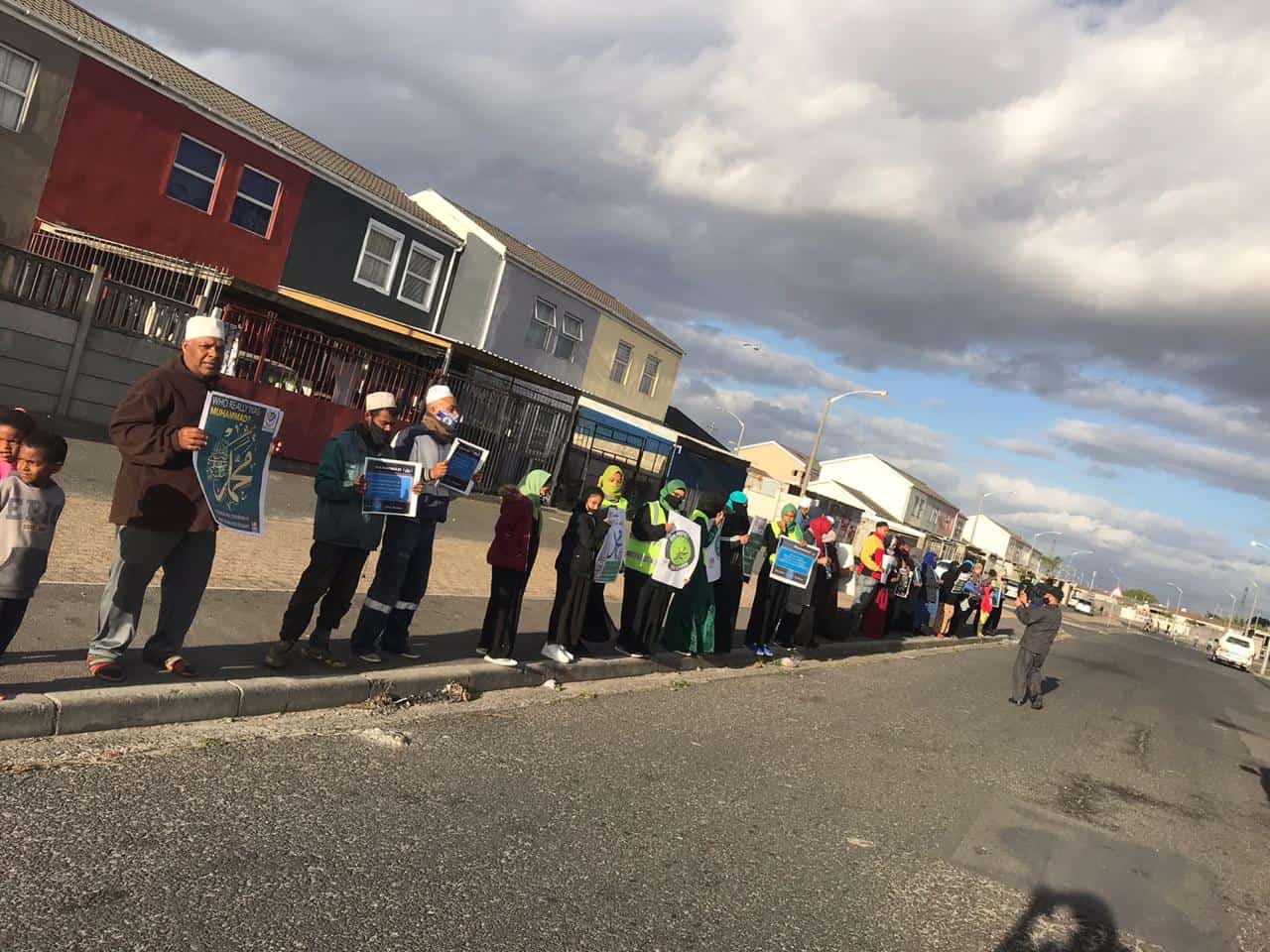 Hanover Park residents have denounced the attacks on Islam in France. Under the banner of Moms Who Care a picket was staged condemning the blasphemous caricatures of Prophet Muhammad (Peace Be Upon Him). They held posters reading “Our Prophet Muhammad Our Honour” and “he brought justice, love and guidance”.