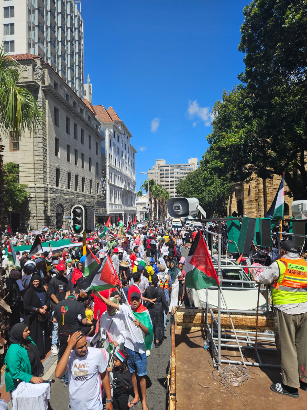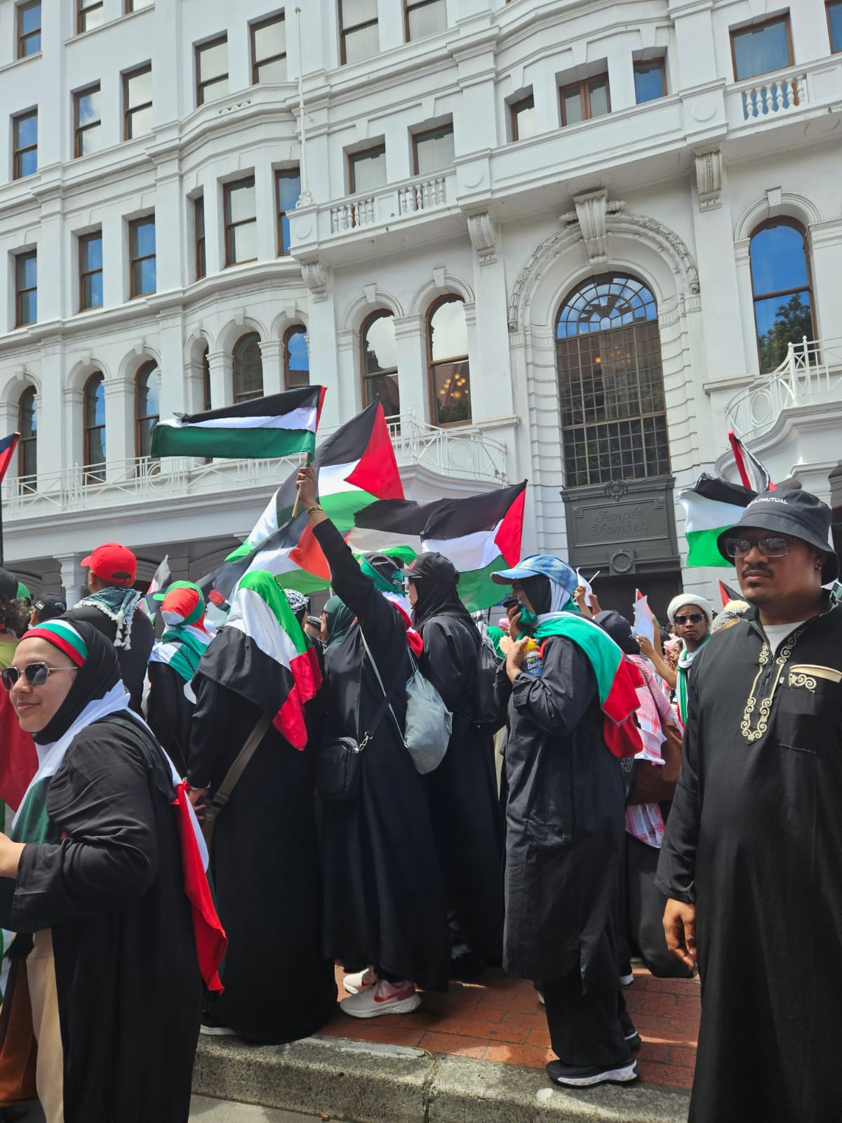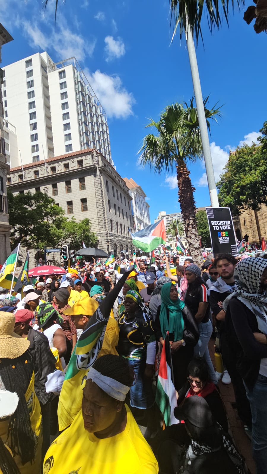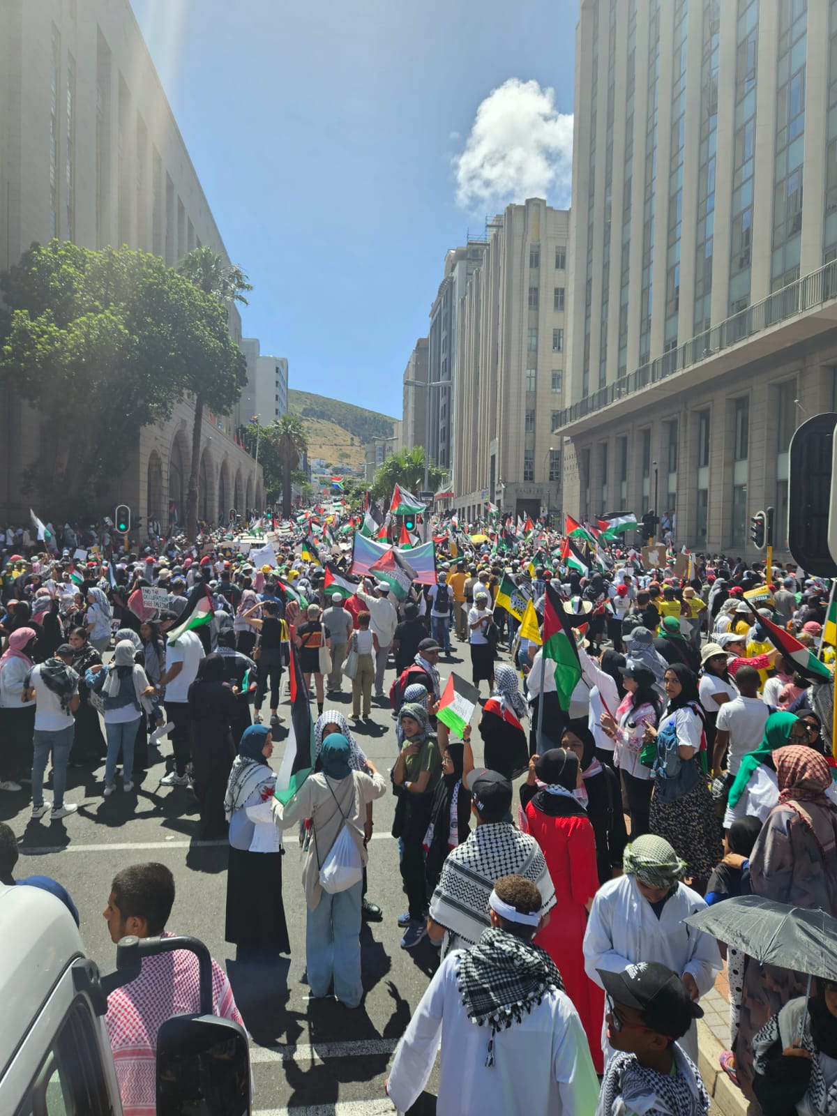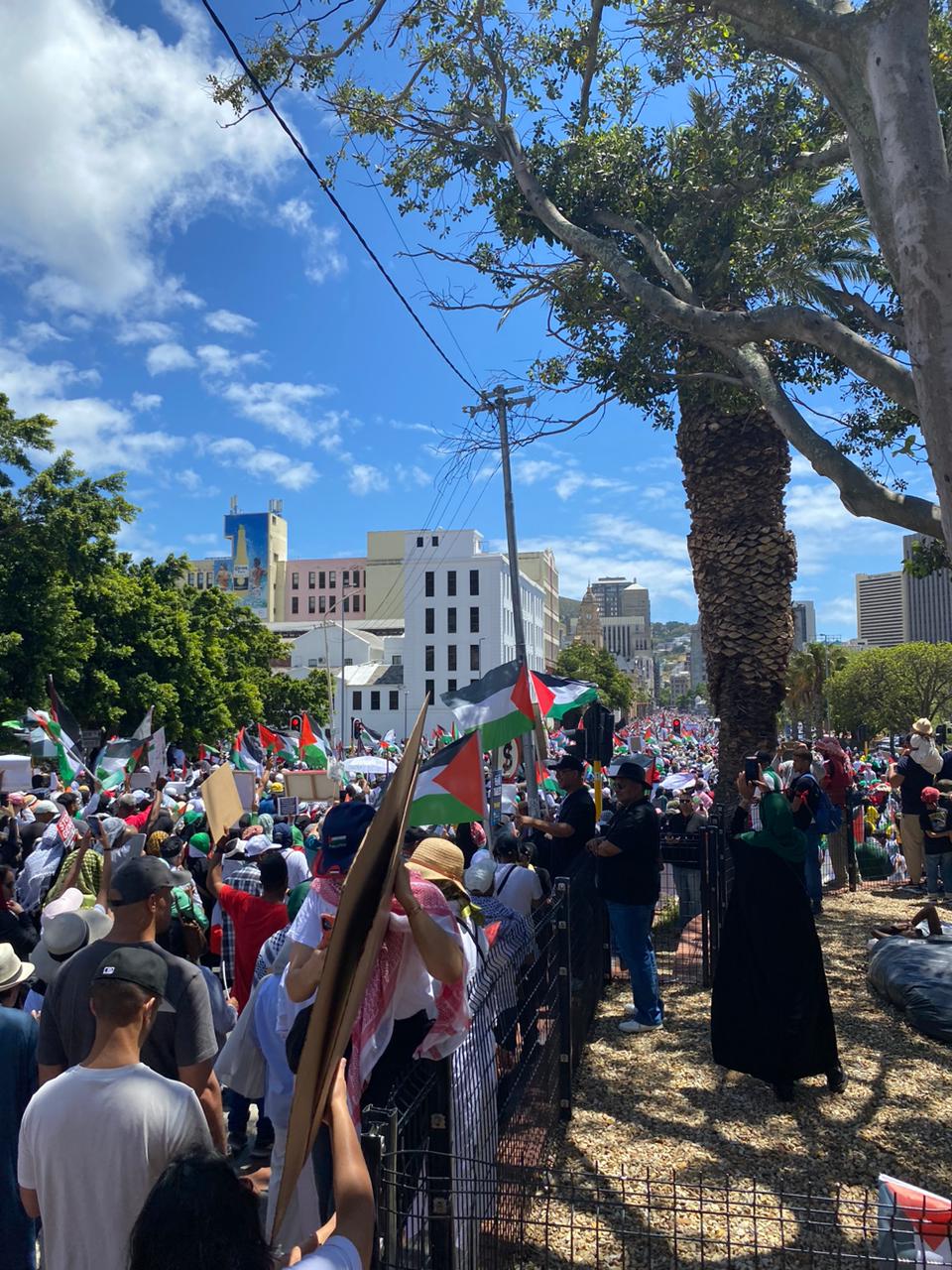 Thousands of people took to the streets demanding concrete action from government and authorities against the supporters of the occupation regime. This includes political parties like the Democratic Alliance, and the ACDP, which have been vociferous in their support for the Israeli entity. Demonstrators also called out the provincial government, as it had been vocal about their support for the people of Ukraine when Russia launched its military campaign there but has remained silent on the genocide being perpetrated by the US-backed Israeli regime.