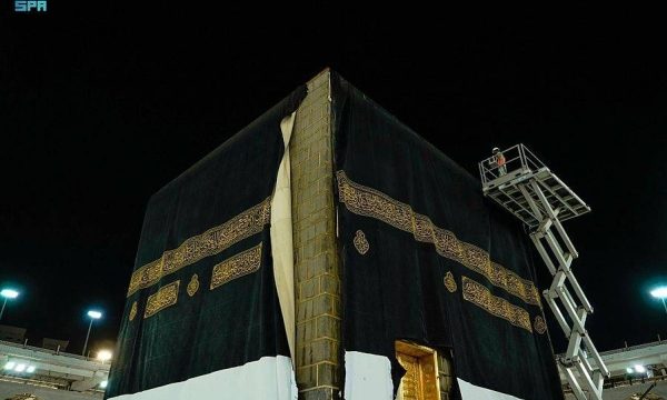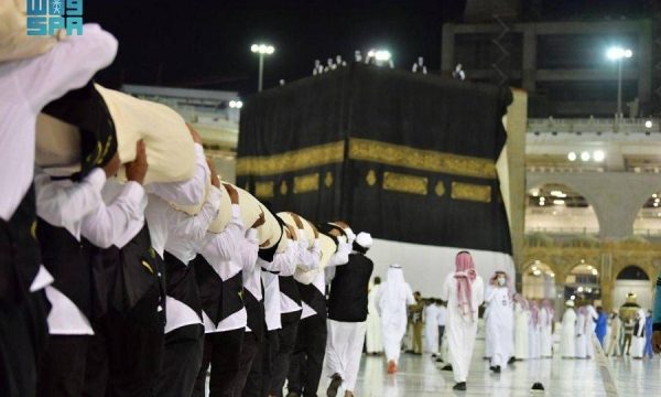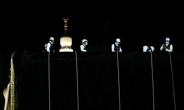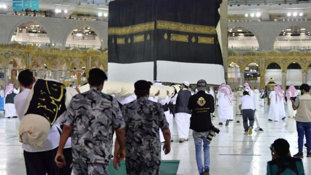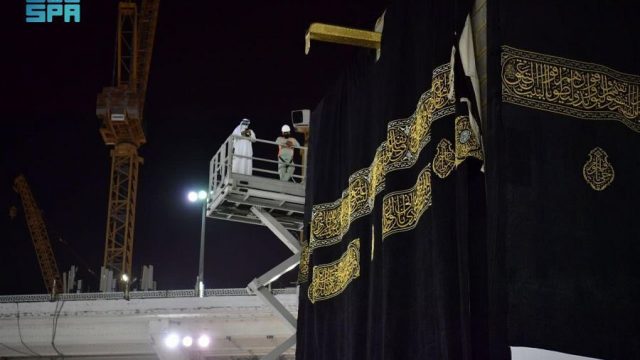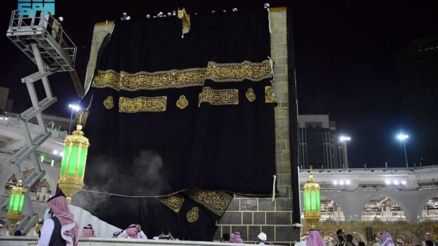 The Kaaba cloth (Kiswa) was replaced as part of the annual Hajj pilgrimage. The changing of the Kaaba cloth occurs on the second day of the Islamic moneth of Thul-Hijja.