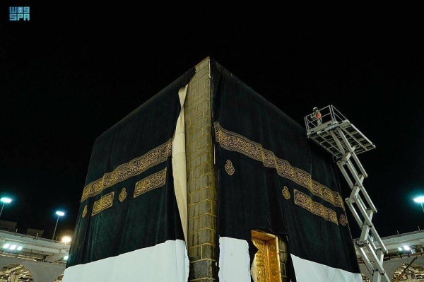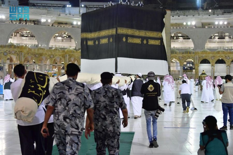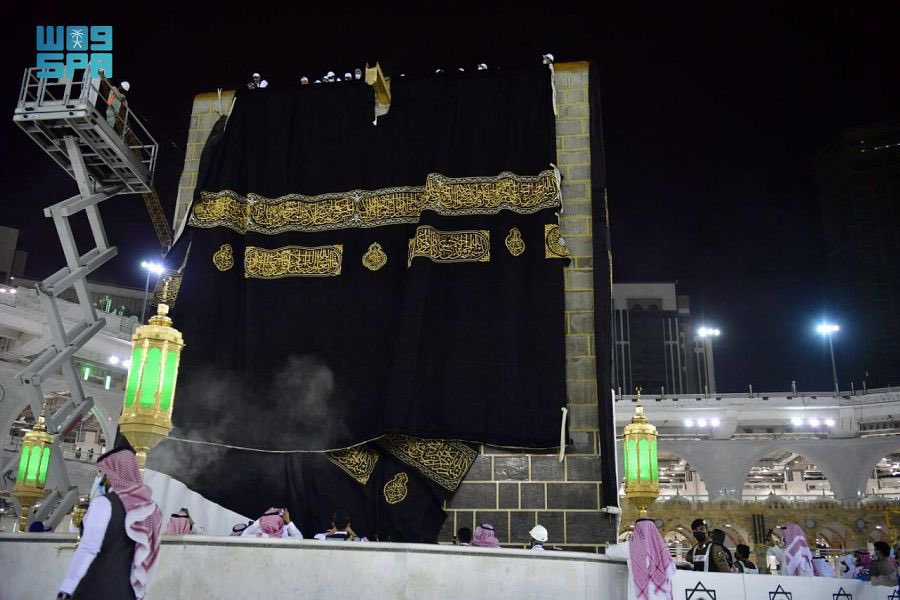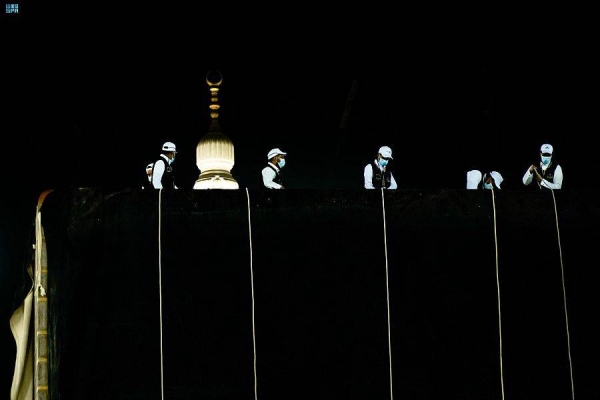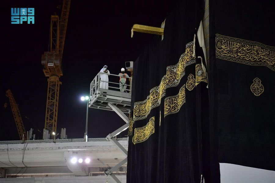 The Kaaba cloth (Kiswa) was replaced as part of the annual Hajj pilgrimage. The changing of the Kaaba cloth occurs on the second day of the Islamic moneth of Thul-Hijja.