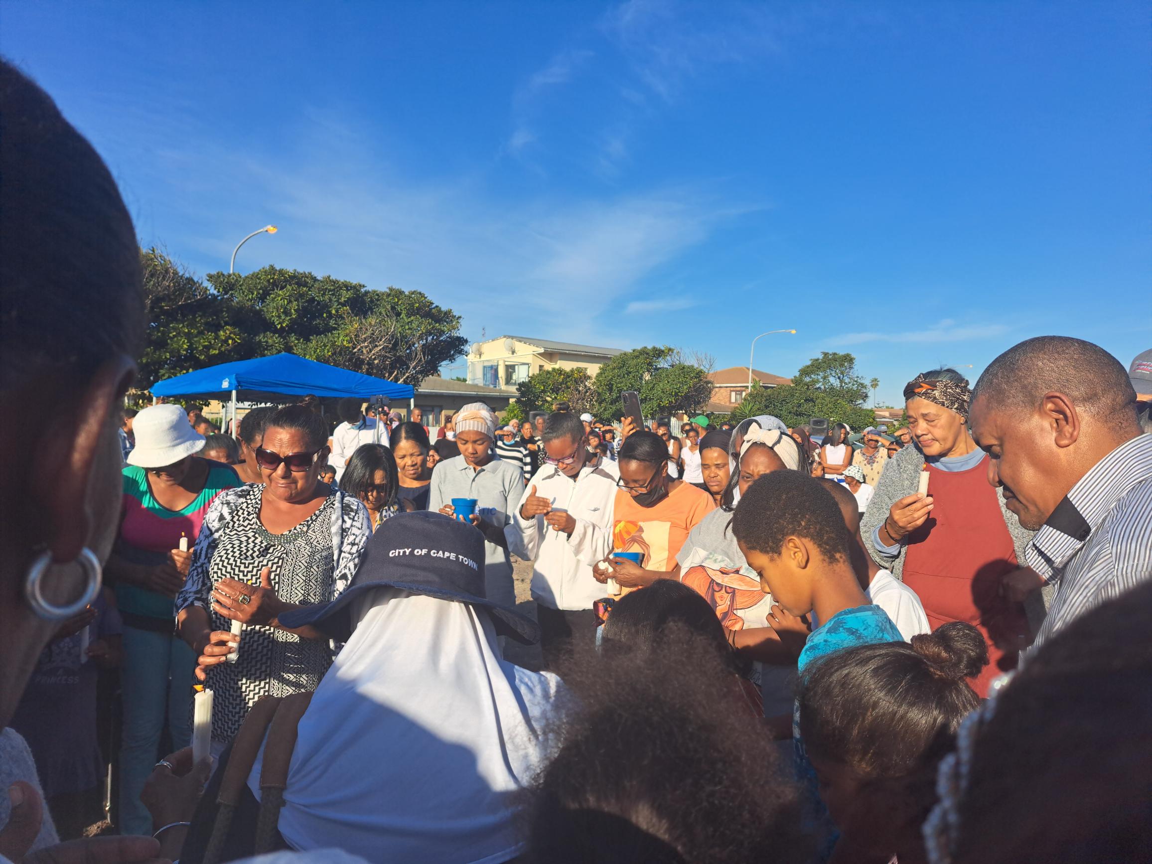 A prayer service was held at the spot where Abongile Mafalala was beaten and burnt.