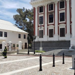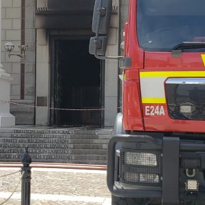 Public Enterprises Minister, Patricia De Lille, says a team comprising electrical, structural and mechanical engineers are awaiting the go-ahead to enter the building to assess the extent of the damage. A drone has meantime been used to conduct a preliminary survey.