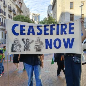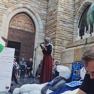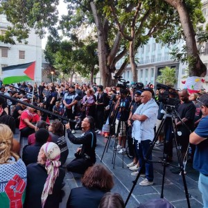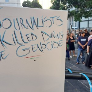Voice notes of Palestinian journalists from Gaza were played at the vigil, in addition to speeches from anti-apartheid activists and veteran journalists.