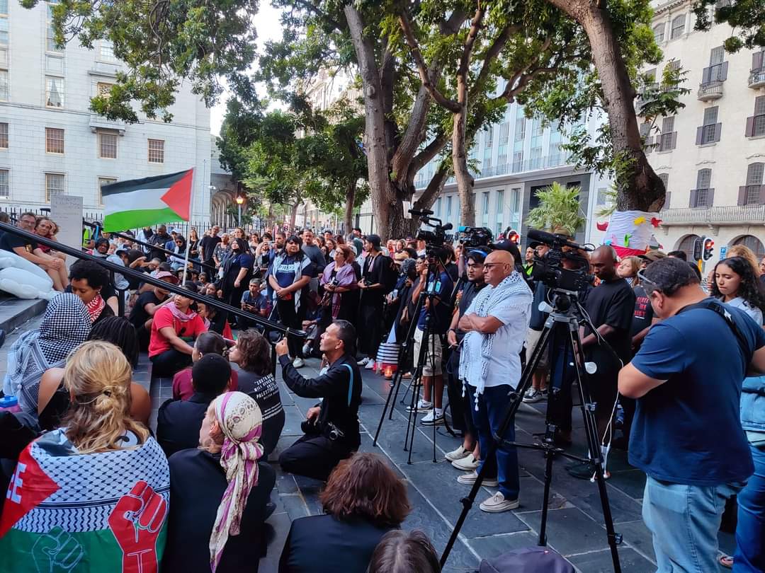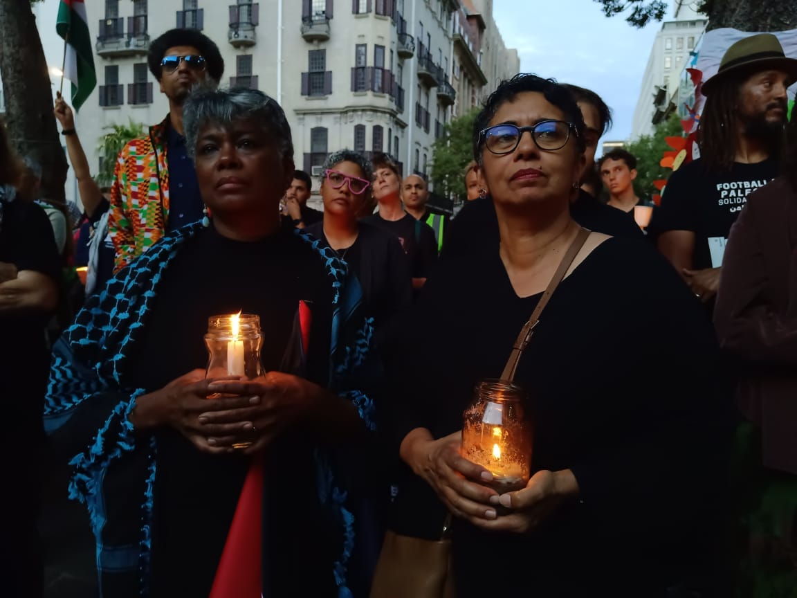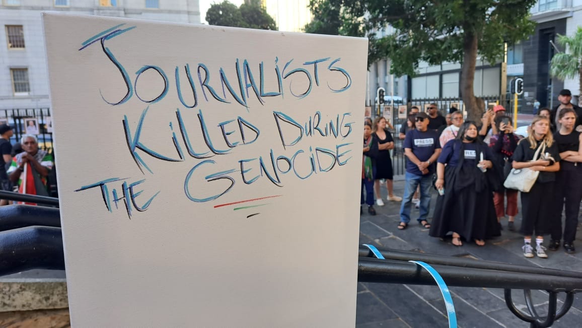 Voice notes of Palestinian journalists from Gaza were played at the vigil, in addition to speeches from anti-apartheid activists and veteran journalists.