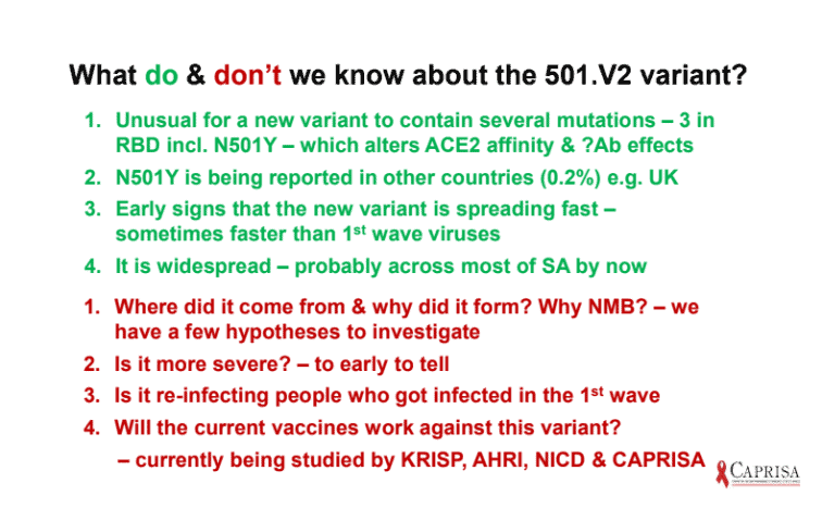 Senior scientist at the KwaZulu-Natal Research Innovation and Sequencing Platform (KRISP), Dr Richard Lessels was speaking after an 11-month study of the progression of Covid-19 in South Africa found a new variant known as 501.V2.