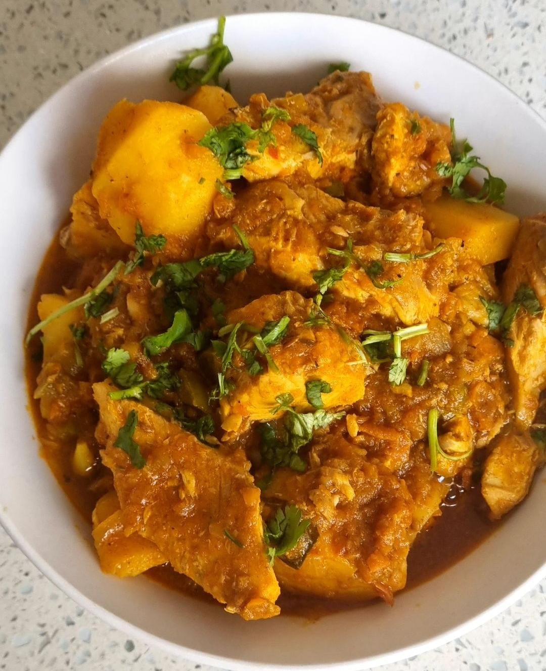 Boil the cleaned and cut potatoes in salted water until soft, then drain. Warm up milk and butter together until the butter is fully melted. Mash the potatoes and then add in the nutmeg,milk and melted butter and combine.