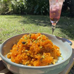 Ingredients 1kg carrots (grated) 10 cardamom pods Pinch of saffron (1tbsp hot milk to bring out the colour) 4tbsp ghee 300g sugar 300ml full cream milk Pinch of salt Zest of one orange 1tbsp almonds 1tbsp pistachio nuts 1tbsp cashew nuts Method Add one tablespoon ghee to a hot pan or pot and sauté carrots […] […]