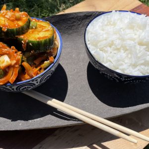 Ingredients 4 English cucumbers (cut into 1cm thick rounds) 1 tbsp salt 2 tbsp minced garlic 4 green onion stalks(sliced) 1 small onion(sliced) 2 tbsp gochugaru(Korean chilli powder) 2 tsp sugar ¼ cup rice vinegar ¼ cup sesame oil 2 tbsp sesame seeds Method In a bowl, add the cut cucumber. Add salt, then mix […] […]