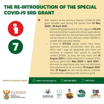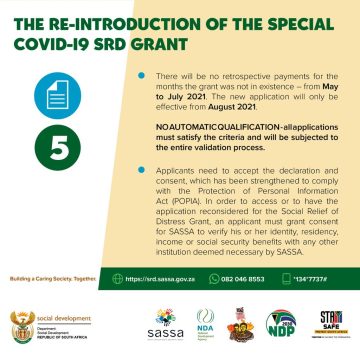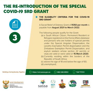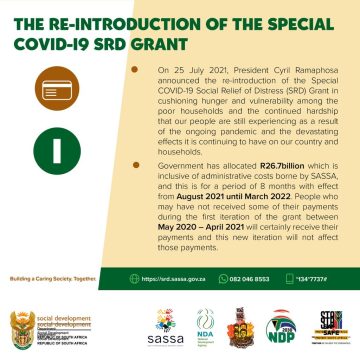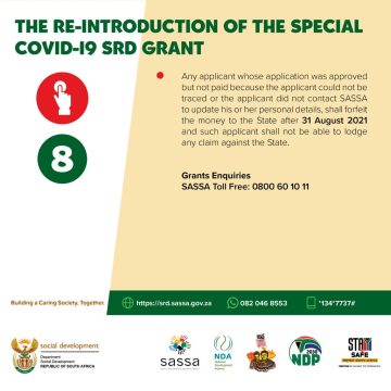 The Minister has briefed the public on the reinstatement of the SRD grant, which was announced by President Cyril Ramaphosa last month.