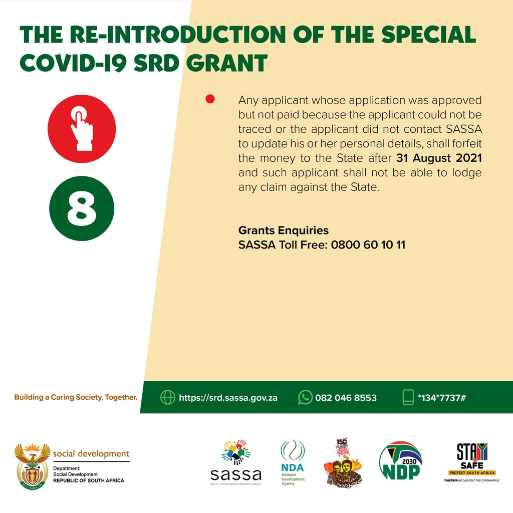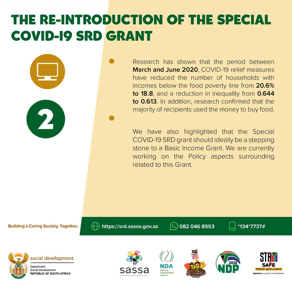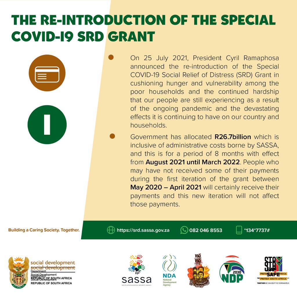 The Minister has briefed the public on the reinstatement of the SRD grant, which was announced by President Cyril Ramaphosa last month.