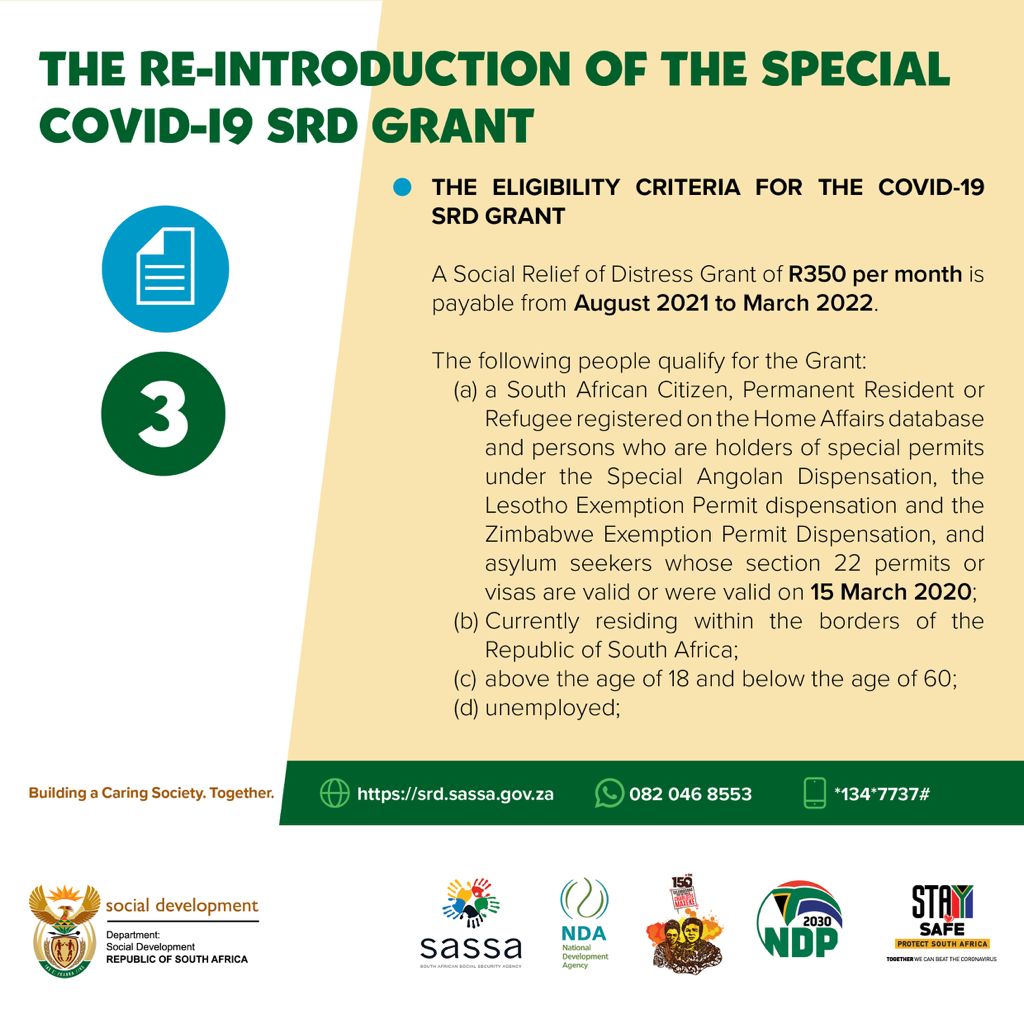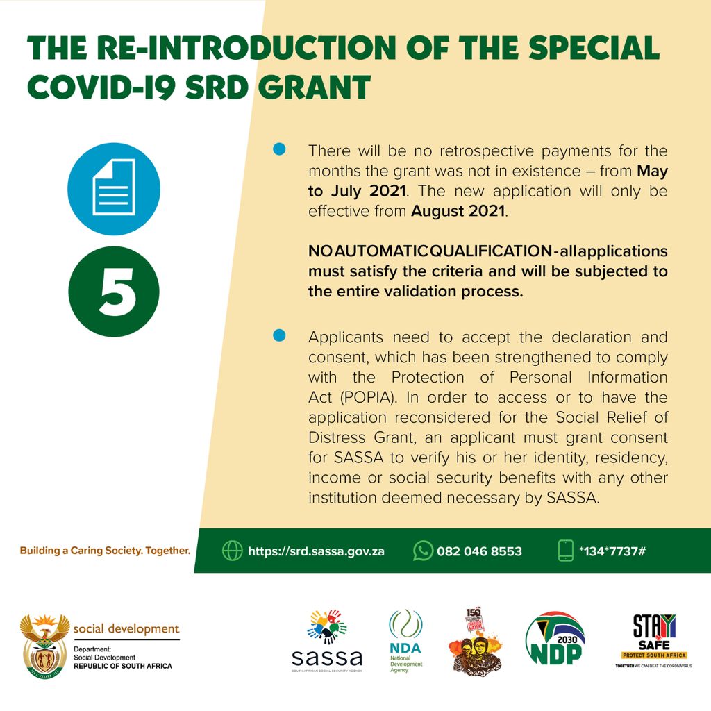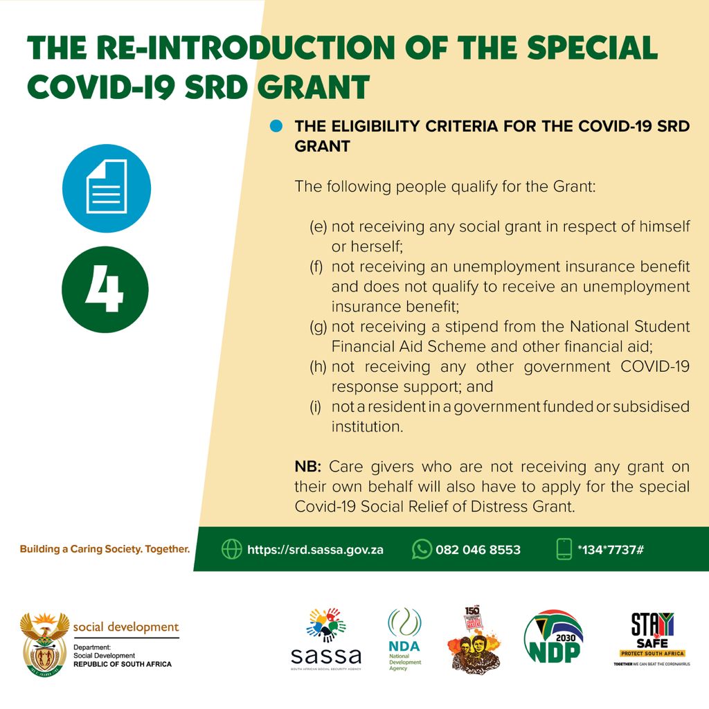 The Minister has briefed the public on the reinstatement of the SRD grant, which was announced by President Cyril Ramaphosa last month.