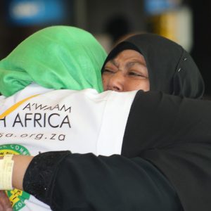 Emotional scenes have played out at Cape Town International Airport this afternoon, as more Hujaaj return from the holy pilgrimage. The airport was lit up with the glow emanating from the faces of the Hujaaj as they reunited with their families.