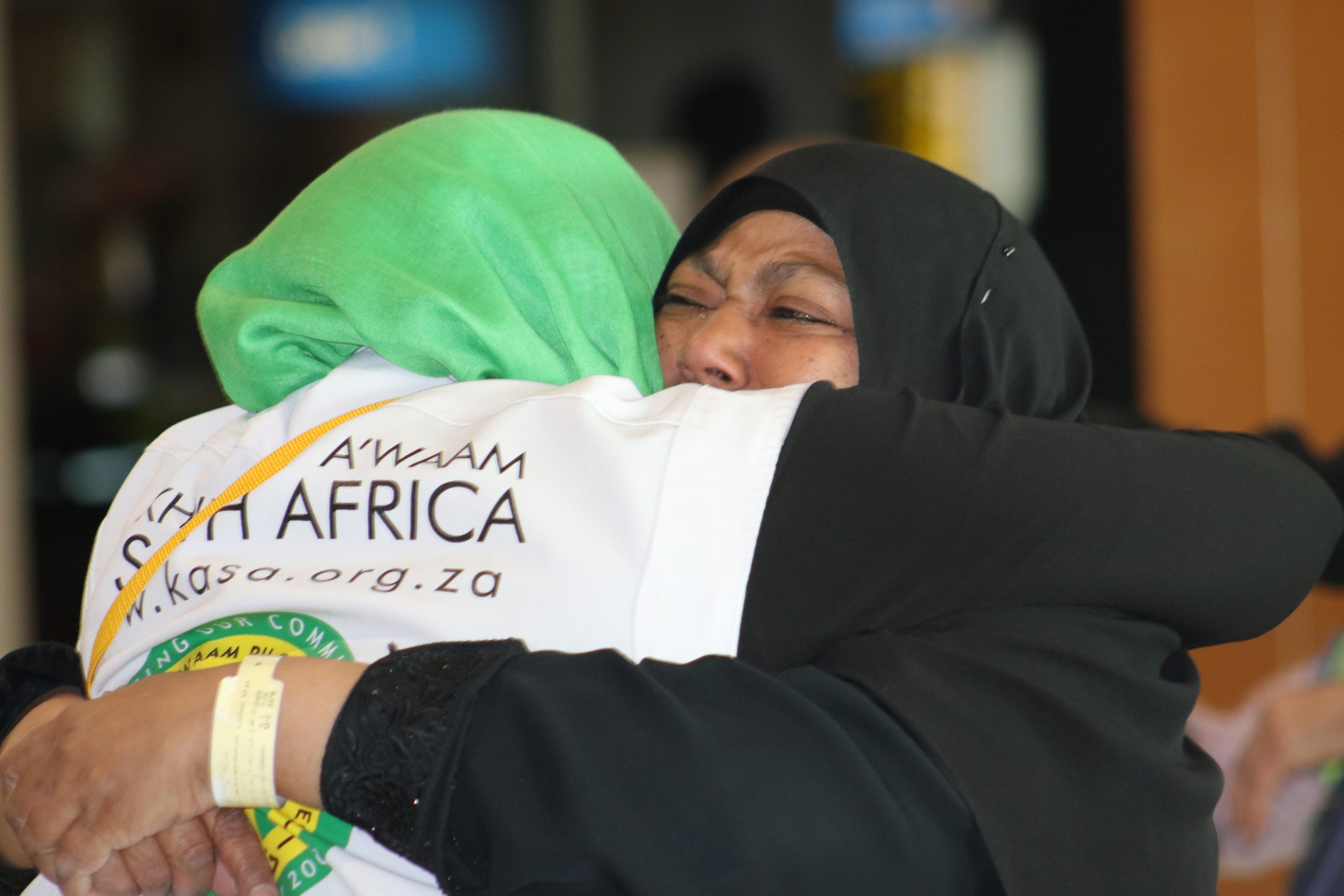 Emotional scenes have played out at Cape Town International Airport this afternoon, as more Hujaaj return from the holy pilgrimage. The airport was lit up with the glow emanating from the faces of the Hujaaj as they reunited with their families.